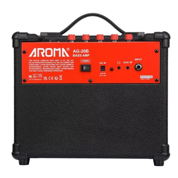Ο Aroma AG20Β είναι ενισχυτής ηλεκτρικού μπάσου απο την Aroma.Με ισχύ 20 Watt, ο AG20Β είναι ικανός να καλύψει απο πρόβες μέχρι μικρά Live, καθώς το 6,5 ιντσών ηχείο του αποδίδει εξαιρετικά καθαρό ή παραμορφωμένο ήχο, με γεμάτα μπάσσα και λεπτομέρεια στις ψηλές συχνότητες.Διαθέτει Equalizer 4 περιοχών με Bass – MidLow – MidHigh – Treble ρυθμίσεις και ξεχωριστo Level για το συνολικό Volume.Το πακέτο συμπληρώνει η δυνατότητα σύνδεσης Bluetooth συσκευής για να κάνετε streaming το περιεχόμενο της συσκευής σας, ενώ αν δεν διαθέτετε πρόχειρη συσκευή με bluetooth, η είσοδος AUX στην πίσω πλευρά σας επιτρέπει να συνδέσετε τον υπολογιστή ή το Tablet – Smartphone σας. Τέλος, διαθέτει έξοδο ακουστικών με βύσμα mini jack 1,4″ για να παίζετε οποιαδήποτε στιγμή της ημέρας χωρίς να ενοχλείτε τους γείτονες!