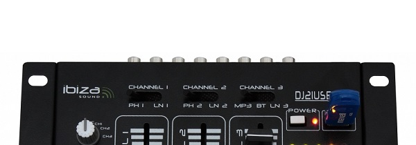 Δωρεάν Έξοδα Αποστολής στην Ελλάδα Ο DJ-21 USB-MKII Blue Touth δέχεται με επιλογή ,2 Pic-Up , 3 συσκευές Line ( πχ cd), USB Stick και μικρόφωνο. Επιλογέας Fader και έξοδο ακουστικών. Συνοδεύεται απο τροφοδοτικό 220VAC> 12VDC