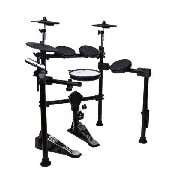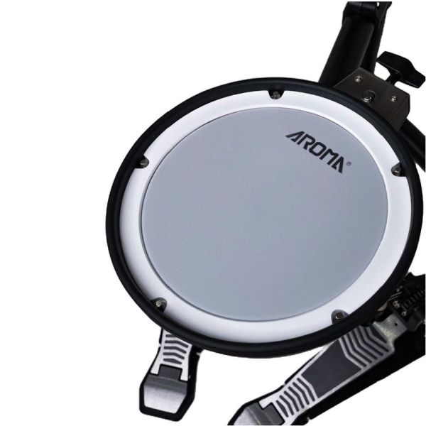 Aroma TDX-22 Electric Drum Kit. Αυτό το κιτ αποτελείται από 5 5 mesh head drums and 3 half silicone κύμβαλα, προσφέροντας φυσική αίσθηση και εξαιρετικά αθόρυβο response. Τα κύμβαλα Snare, bass, toms, hi hat, crash και ride είναι όλα τοποθετημένα σε μια στιβαρή αλουμινένια βάση , συμπεριλαμβανομένων των πεντάλ Hi Hat και Bass Drum. Αυτό το κιτ είναι τέλειο για όσους αγαπούν τα τύμπανα αλλά δεν τους αρέσει ο θόρυβος – συνδέστε τα ακουστικά σας και μάθετε να παίζετε σε απόλυτη ησυχία. Χωρίς Κάθισμα.