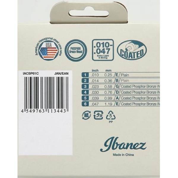 Ibanez Σετ χορδών ακουστικής κιθάρας Phosphore Bronze (Coated) Extra Light.