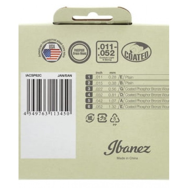 Ibanez Σετ χορδών ακουστικής κιθάρας Phosphore Bronze (Coated) Light Gauge.