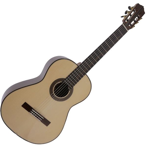 Το καπάκι είναι απο μασίφ Ευρωπαϊκό έλατο, τα πλαϊνά και πίσω ξύλα απο μασίφ Ινδικό παλίσανδρο, η ταστιέρα απο rosewood και το μανίκι απο μαόνι.