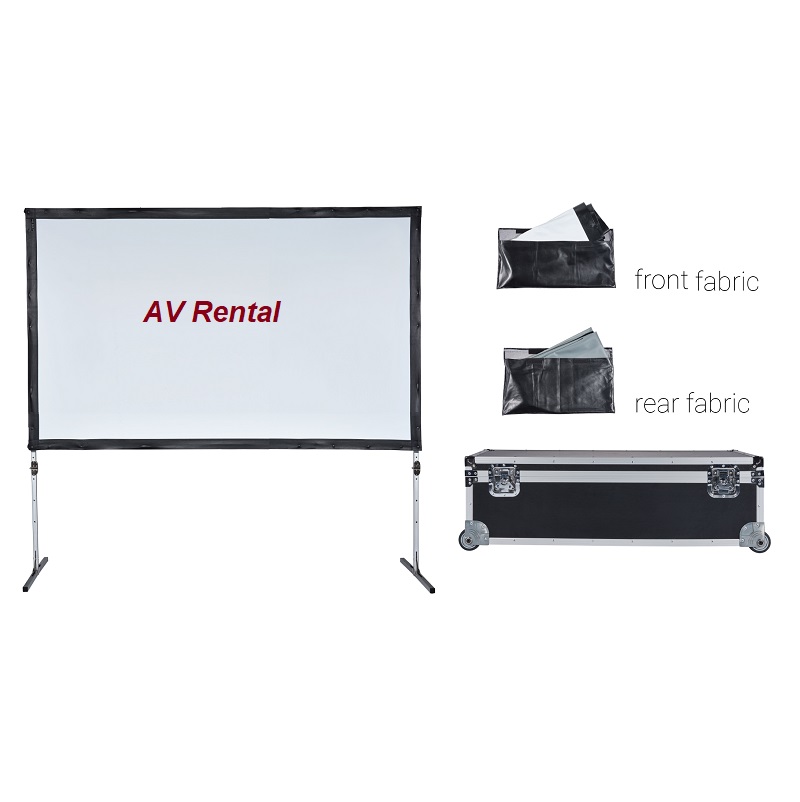 Σετ οθόνης (300×188)cm που περιλαμβάνει πλαίσιο στήριξης 16:10 , δύο πανιά (εμπρόσθιας & οπίσθιας προβολής), 2 τρίποδα στήριξης και επαγγελματικό flight case. Βάρος ??Kgr